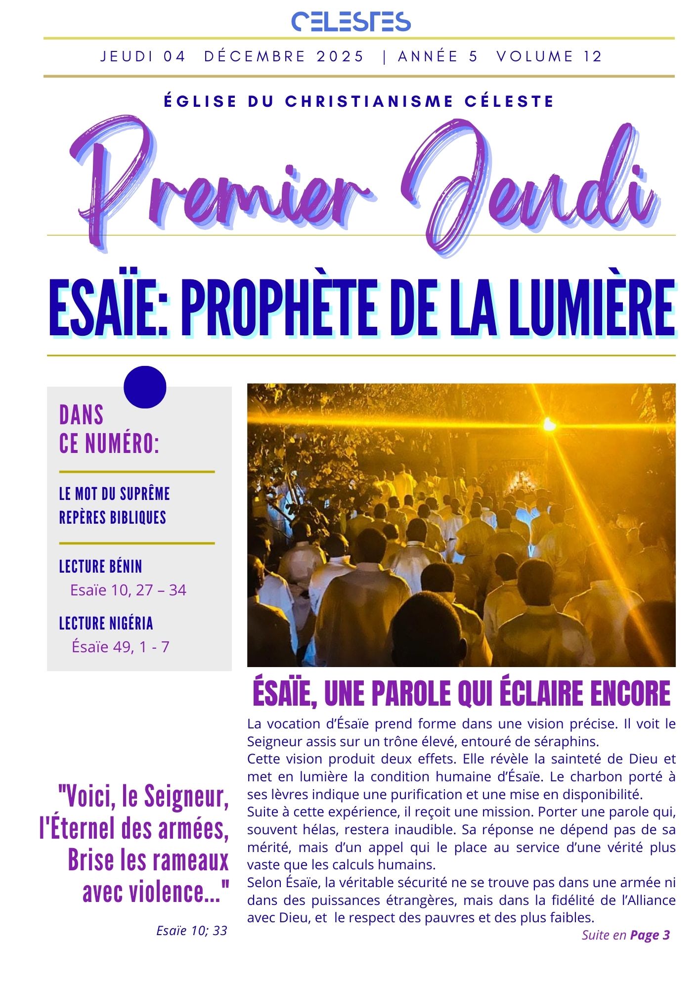 BENIN 19h00: Ésaïe 8, 1 - 7